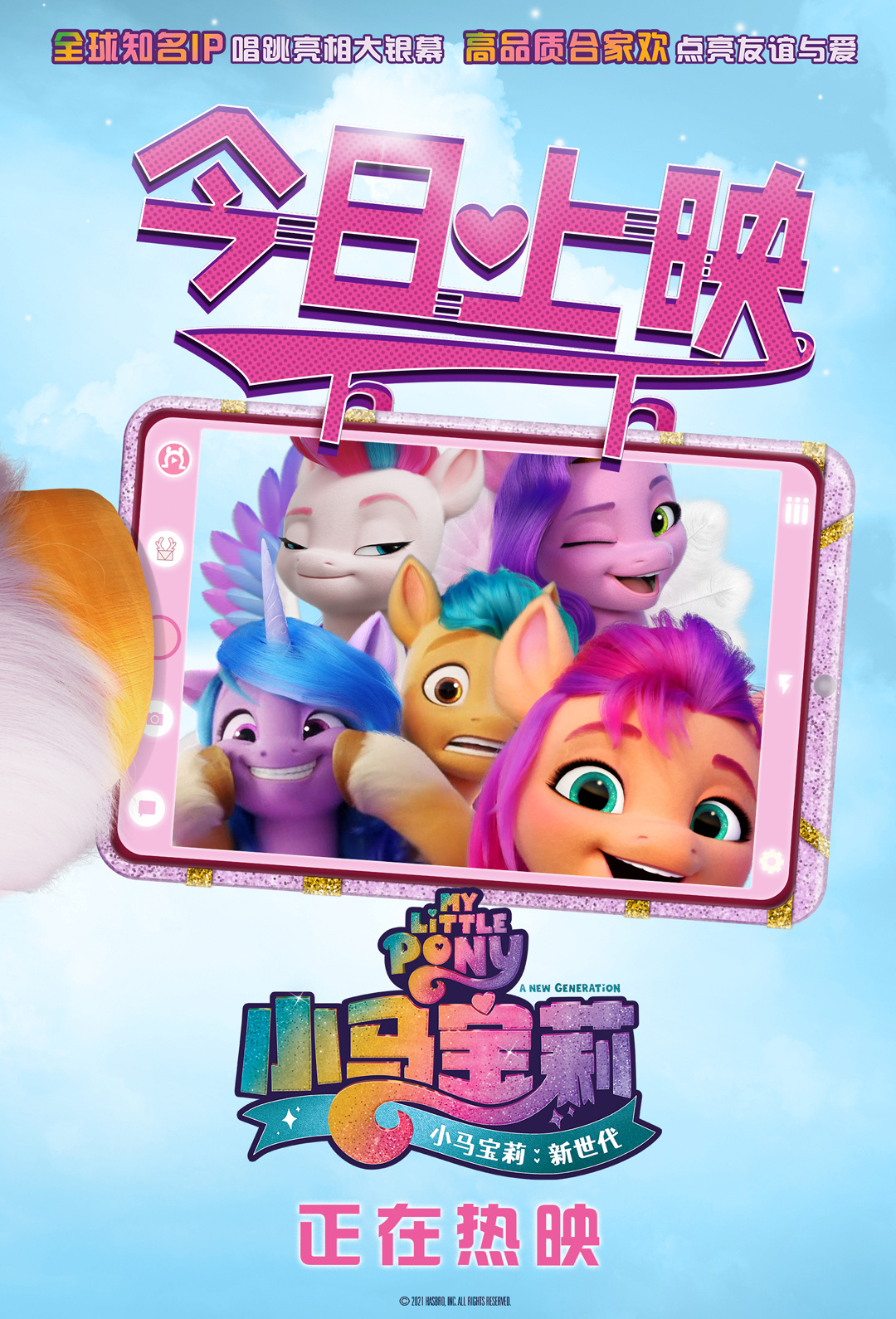 众所周知,《小马宝莉》是孩之宝知名IP,不仅拥有玩具和游戏产品,同名动画早就蜚声国际。这次的《小马宝莉:新世代》也是系列首部全CG动画大电影,继续传承“友谊魔法”的内核,并增加了“自我表达”的理念。更重要的是,这一次,小马们的冒险之旅升级了,更新奇,更有趣。
