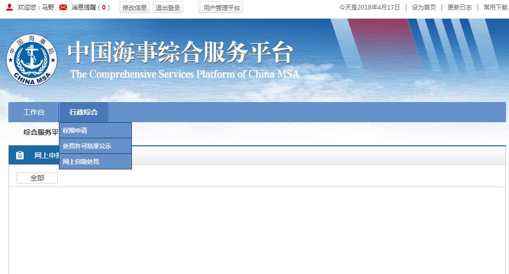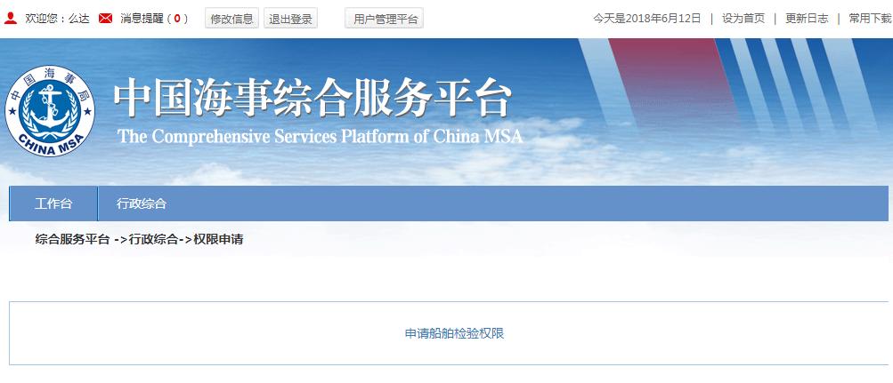 1、注册用户成功之后,在海事局官网进行登录,进入海事综合服务平台,申请权限功能,会延时显示,请您耐心等待3分钟左右。