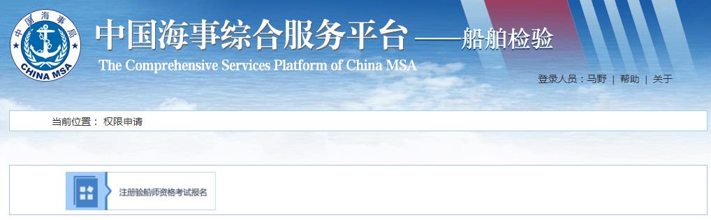 4、申请“船舶检验系统”之后,会出现“注册验船师考试报名”图标,点击之后,就可以完成外网自然人申请验船师考试的权限申请步骤,进行报名。