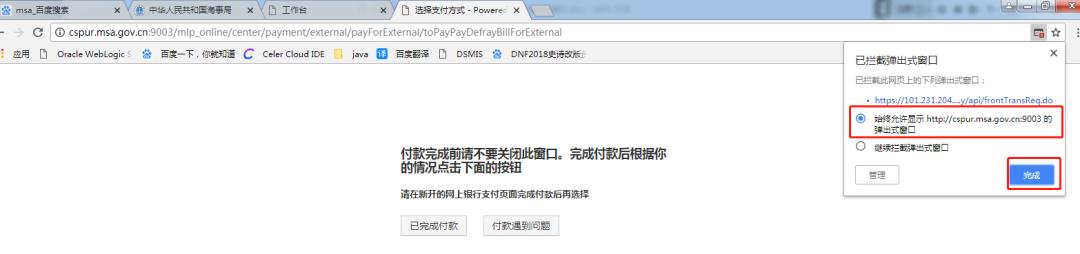 点击“确认支付”按钮之后,弹窗被拦截,点击“允许弹出”。