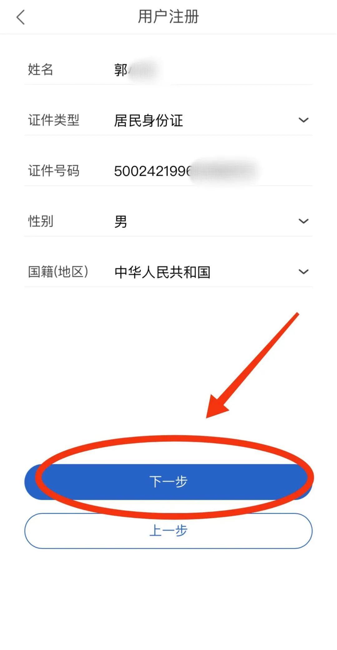 05 输入个人身份信息,点击【下一步】。