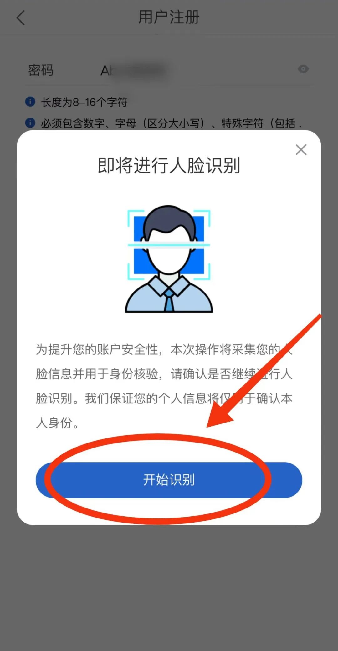 07 点击【开始识别】,根据提示进行人脸识别。识别成功后,注册就完成啦。