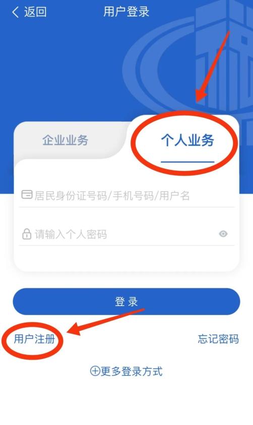 03 选择【个人业务】,点击左下角【用户注册】。