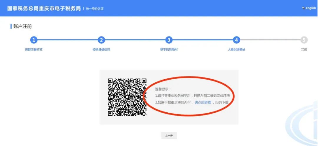 05 打开重庆税务APP扫描二维码,按提示进行人脸识别。如没有下载安装重庆税务APP,可按页面提示下载安装后使用。识别成功后,注册就完成啦。