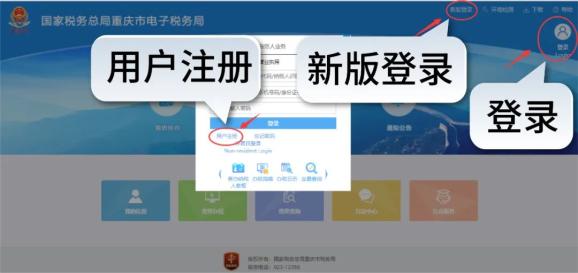 01 打开重庆市电子税务局网页端,点击右上角【登录】,在弹出的窗口中点击【用户注册】。